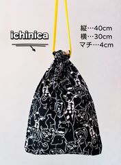 1 さくらんぼ 猫 大きめ 40×35 体操着袋 着替袋 巾着 ハンドメイド