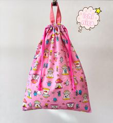 ハンドメイド】特大サイズ★レモン柄★ナップサック★ピンク×水色★男の子 女の子