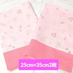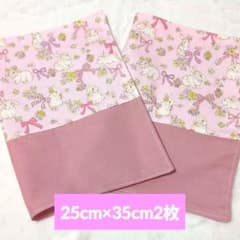 くすみピンクうさぎさんとリボンランチョンマット2枚 25cm×35cm