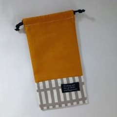 ハンドメイド お箸袋 歯ブラシ袋 カトラリー袋 巾着袋 格子グレー×辛子タグ付き