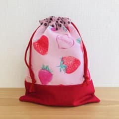 【No.74】給食袋・巾着袋(いちご/果物/フルーツ/ぴんく)