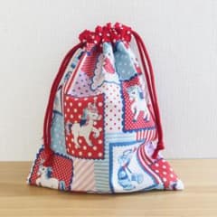 【No.70】給食袋・巾着袋(動物/くま/うさぎ/ユニコーン/赤)