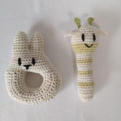 ベビー用あみぐるみ うさぎのラトル キリンのにぎにぎ