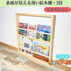 【未使用】表紙が見える薄い絵本棚 2段 ワイド 薄型 マガジンラック