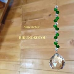 サンキャッチャー【51-6】30㍉ チェコガラス エメラルドグリーン×イエロー