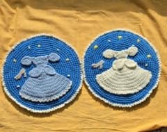かぎ針編み/花モチーフ/クッションカバー/水色