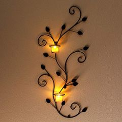 壁飾り アイアン ガラス キャンドルホルダー 壁掛け 花瓶 インテリア キャンドルスタンド ウォールデコ リーフ 植物 LED付きウォールデコレーション [mty9045]t
