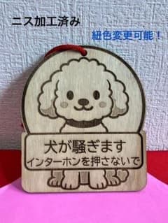 犬が騒ぎますインターホンを押さないで お願い木製プレート トイプードル