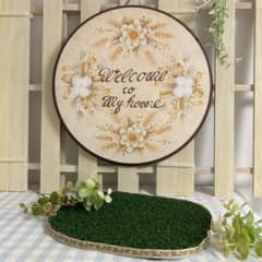 在庫1【ウェルカムボード花柄】トールペイント木工 ハンドメイド【プレ付】