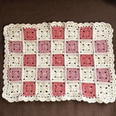 マルチカバー モチーフ編み かぎ針編み ハンドメイド アイボリー×ピンク