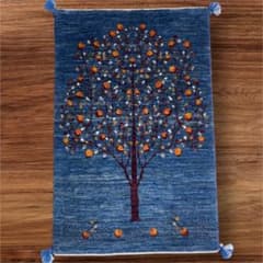 ギャッベ リズバフ 玄関 約60x90cm ペルシャ 本物 青 生命の樹