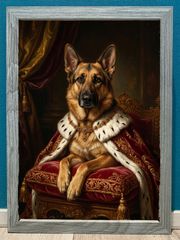 犬(ジャーマンシェパード)のルネサンス風肖像画 A4額装インテリア壁掛け