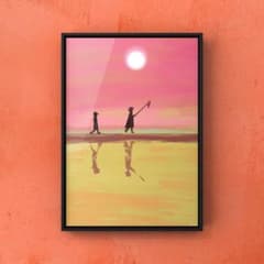 ★A4フレーム付き★オリジナル アートポスター Eternal 海 サンセット