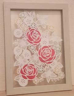 【(匿名配送)】切り絵 花と空飛ぶくじら