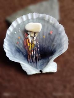 天然石クラゲの深海アート|ホタテ貝殻レジン作品(6cm)