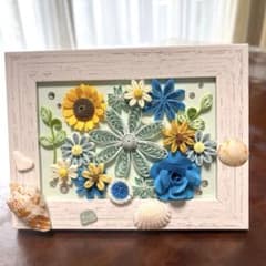 ペーパークィリングサマーフレーム、シーグラス、貝殻