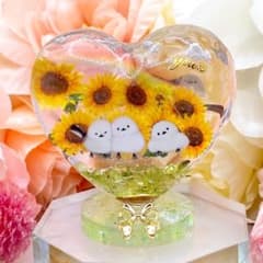 No663 ぷっくりハート大 シマエナガと向日葵☆ペリドット&クリスタル☆