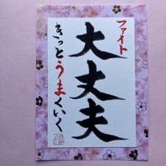 書道作品 『ファイト 大丈夫 きっとうまくいく』 直筆 画仙紙はがき 台紙付き