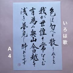 書道作品 『いろは歌原文』 直筆 越前和紙雲竜紙スノーホワイトA4サイズ