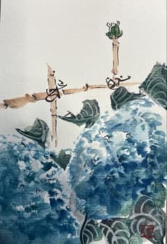 ポストカード(原画)ー紫陽花と蛙