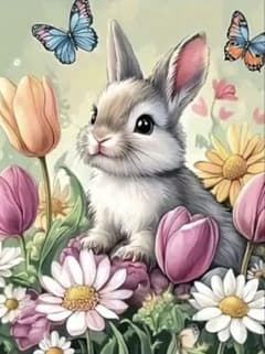 【ダイヤモンドアートキット】うさぎと花(30×40)