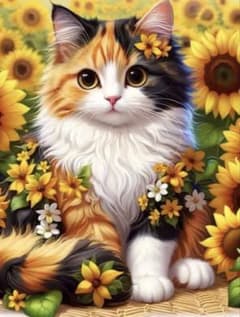 【ダイヤモンドアートキット】ひまわりと猫(30×40)