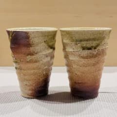 【未使用品】 信楽焼 フリーカップ ビアカップ ペア 湯呑み グラデーション