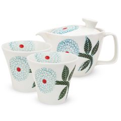 J-kitchens 勲山窯 急須セット S 波佐見焼 日本製 (急須 ペア湯呑み 茶器 セット) 240ml 130ml 1人用 ~ 2人用 茶こし付き ダリア プレミアム