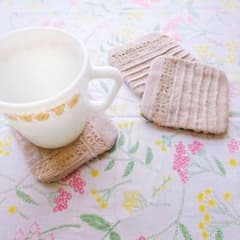 ハンドメイド コースター 3枚セット アンティーク風レース ピンタック 小花柄