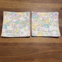 リバティ ハンドメイド 花柄と動物柄の布製コースター2枚セット