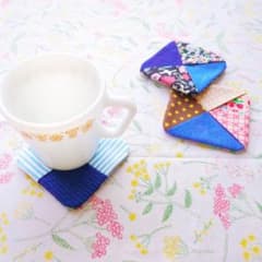 ハンドメイド コースター 3枚セット パッチワーク風 ブルー系