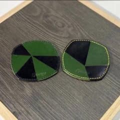 本革 サドルレザー コースター レザーコースター 2枚セット 緑 ハンドメイド