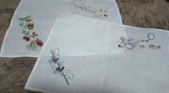ランチョンマット 2枚 刺繍入り いちごと猫 ぶどうと犬