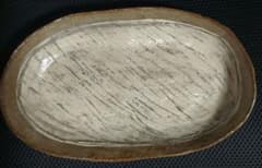 新品 未使用 長谷園伊賀焼 1点もの 作家作品 陶器の楕円皿 白と茶色