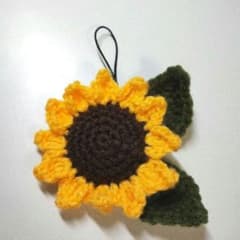 ひまわりのストラップ キーホルダー バッグ スマホチャーム 編み物 ハンドメイド