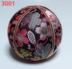 3001 手毬 花柄 黒 赤 ピンク 金襴 木目込みまり 置物