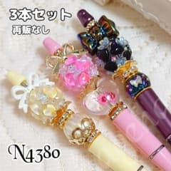 sale‼️N4381 カスタムボールペン3本セット ハートビーズ リボン 薔薇