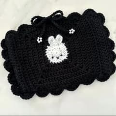 【四六版】【単行本サイズ】うさぎとお花の手編みブックポーチ|編み物Iブックカバー