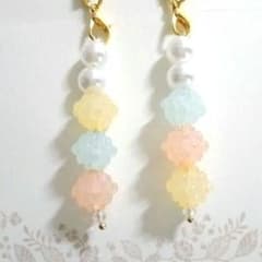 2個セット ビーズチャーム ストラップ 黄 青 オレンジ バール パステル