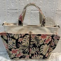 【ハンドメイド】♡ハワイアンリーフ花柄♡ポケット沢山お散歩バッグ