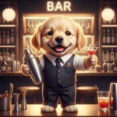 【152】ステッカー・缶バッジ・キーホルダー ゴールデンレトリバー バーテンダー