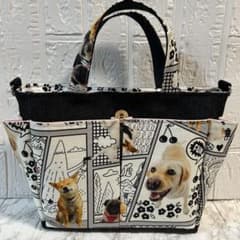 【ハンドメイド】♡コミック犬柄♡ポケット沢山お散歩バッグ