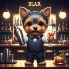 【155】ステッカー・缶バッジ・キーホルダー ヨークシャーテリア バーテンダー