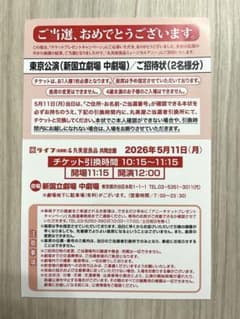 ミュージカルアニー新国立劇場 中劇場 招待状 2名分 5/11