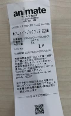 アニメイトブックフェア2026 1ポイント「4/29迄」