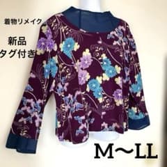 【新品タグ付き】着物リメイク 紫の花柄と紗 長袖ブラウス 正絹 一点物 透け感