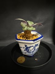 仕事運UP☆可愛い緑の妖精さん☆アデニウム・オベスムのミニ盆栽 素敵な盆栽鉢付き