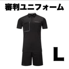 サッカー レフェリー 審判服 レフリー ウェア 上下 セット 黒 ブラック L