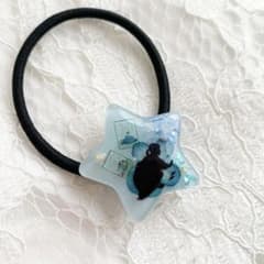 【3811】百人一首 競技かるた ヘアゴム カリビアンブルー色の紫陽花入り星型