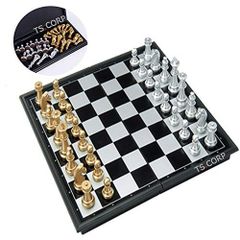 チェス マグネット チェスボード 折りたたみ チェスセット 日本語説明書付き(金&銀)